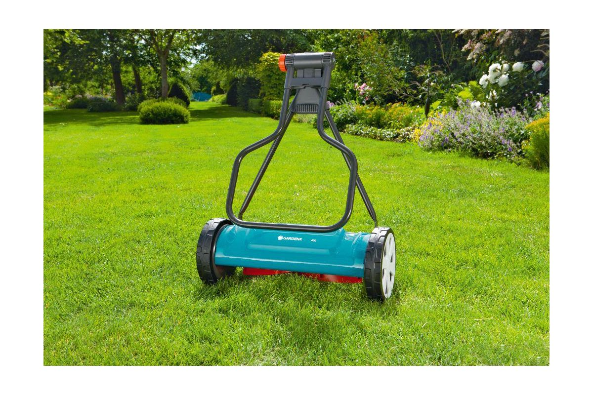 GARDENA 400 Classic (4018-20) – механическая барабанная газонокосилка для кошения травы на участках площадью до 250 м². Газонокосилка имеет качественный и прочный стальной корпус. Данная модель не оснащена травосборником. Для удобства использования и хранения GARDENA 400 имеет эргономичную складную рукоятку с возможностью регулирования высоты. Вес модели – 6 кг.