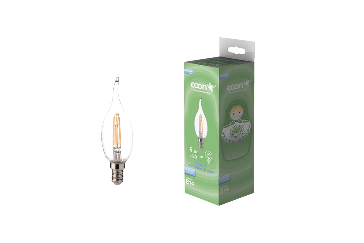 FILAMENT Особенная серия светодиодных ламп, предназначена для использования в декоративных открытых светильниках, хрустальных люстрах и во многих других осветительных приборах в которых важен общий внешний вид. Согласитесь, ведь практически все обычные светодиодные лампы имеют непрозрачный корпус, а это может существенно повлиять на интерьер в целом. Лампа ECON LED Filament выполнена в форм-факторе классической лампы накаливания в прозрачном стеклянном корпусе. Данное решение позволяет навсегда забыть о вопросе сохранения внешнего вида осветительного прибора. Вам остается только лишь подобрать аналог мощности лампы накаливания для замены, цветовую температуру и цоколь.