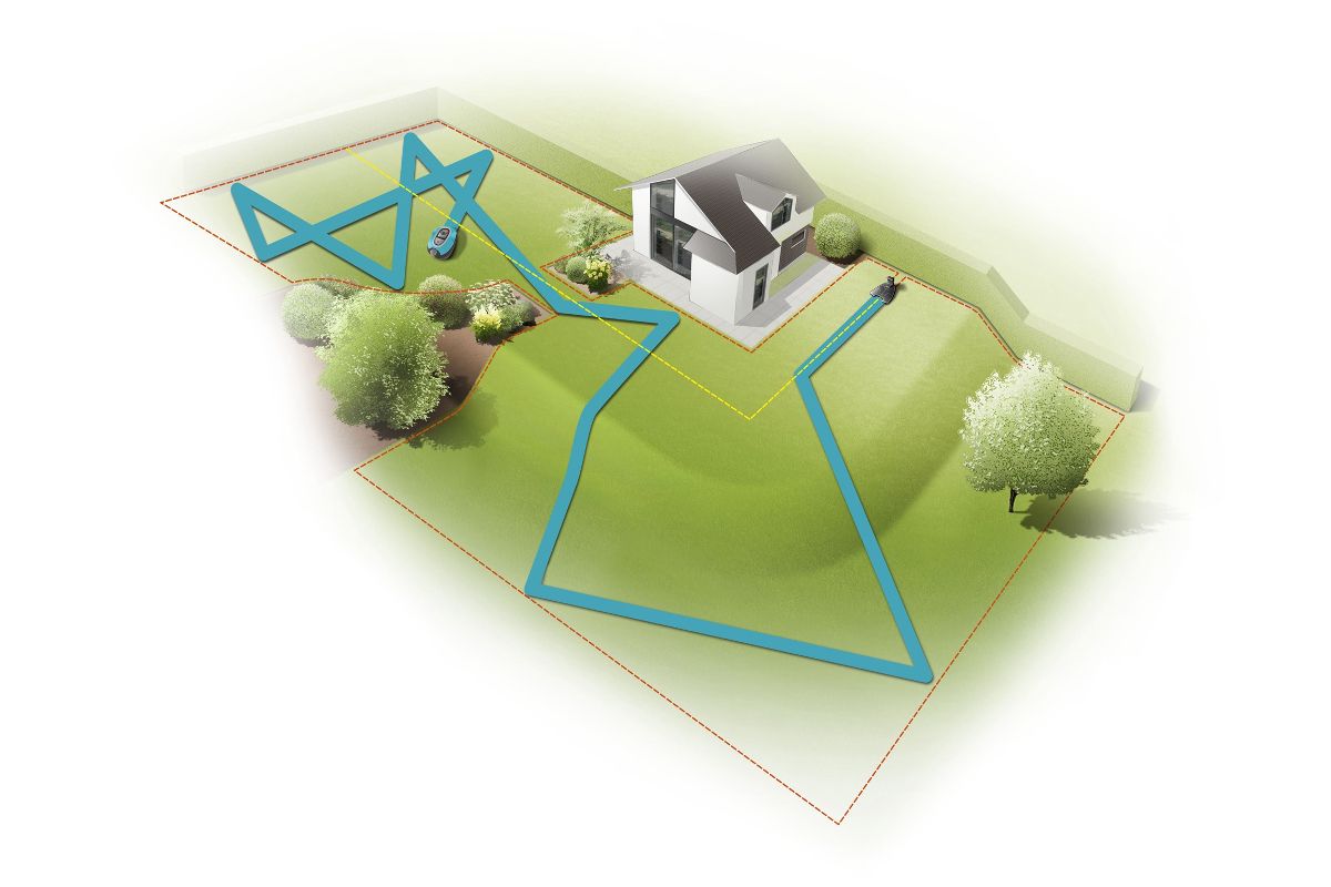 - Основной участок – газонокосилка автоматически работает и заряжается.