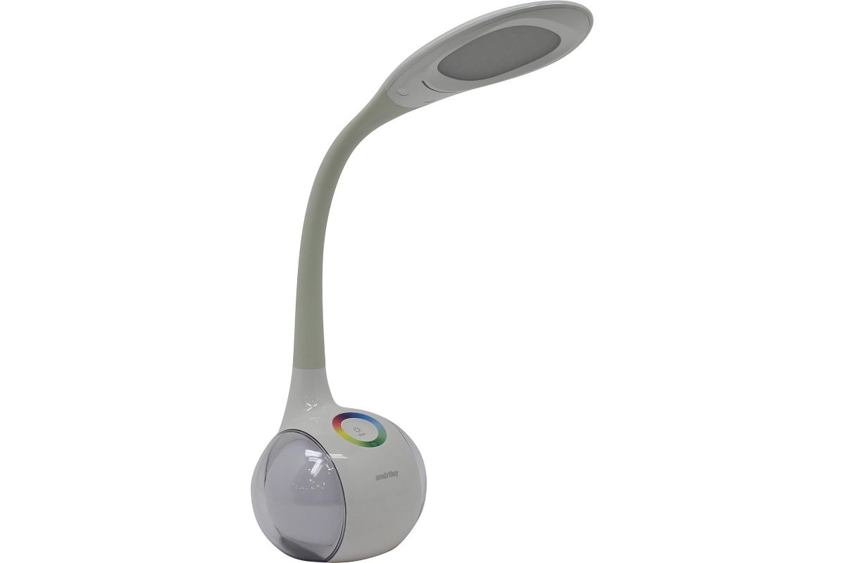Светодиодный настольный светильник (LED) Smartbuy-6W Dim/W(SBL-RG-6-DIM-White) 220В, 34 диода SMD 2835, 3 шаговый диммер, RGB подсветка основания 2 диода, ABS пластик.